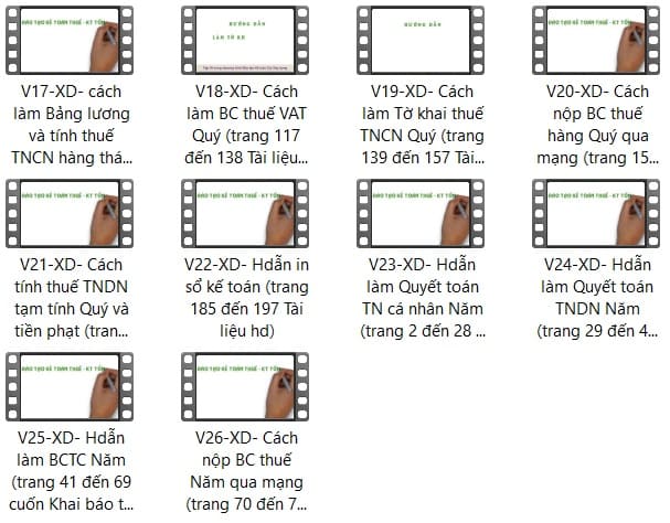 ♦ Mục 4 - Bạn sẽ được cấp 26 video hướng dẫn học kế toán thuế - kế toán tổng hợp Cty Xây dựng trên PM kế toán Excel :