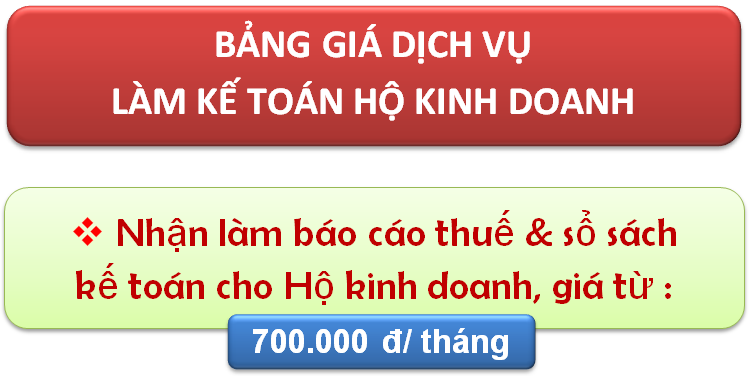 ♦ Nếu hộ kinh doanh không muốn tự làm kế toán và cần kiếm dịch vụ kế toán để khai báo thuế và làm sổ sách kế toán, thì Cty Thanh Trí với kinh nghiệm làm dịch vụ kế toán cho rất nhiều Hộ kinh doanh khắp cả nước, gởi bạn bảng giá dịch vụ kế toán tham khảo dưới đây (bảng giá áp dụng từ Tháng 07/2025) :