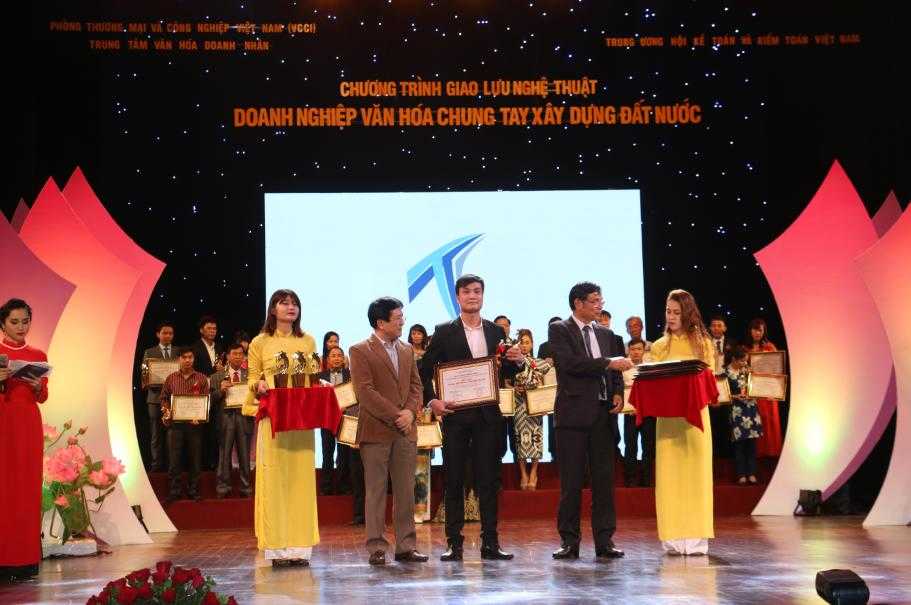 (Ảnh) Đại diện công ty Thanh Trí lên nhận giải (phía sau sân khấu là logo công ty)