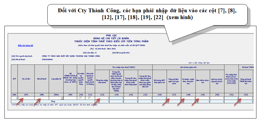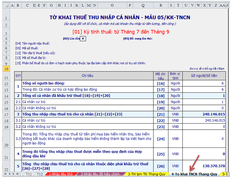 + Bước 3 :Nhập dữ liệu vào Sheet 4 : “05-3BK-QTT-TNCN”