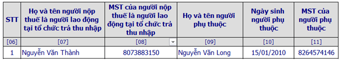 + Phụ lục này kê khai toàn bộ thông tin người phụ thuộc (NPT) để tính giảm trừ gia cảnh trong năm tính thuế