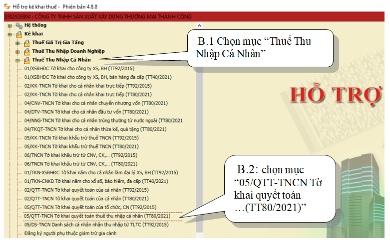 + Đây là mẫu “05-1BK-QTT-TNCN” trên PM HTKK