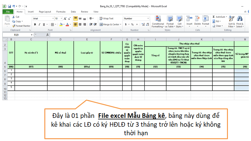 + Dưới đây là Sheet [7-Mau 05-1BK] của File Excel “2-PM tinh Luong va Thue TNCN”: