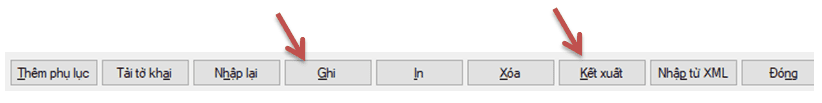 + Sau đó bấm nút “Ghi” trên Phần mềm HTKK, nếu không còn sai thì các bạn bấm “Kết xuất” và kết xuất ra File. xml để nộp BC qua mạng (lưu ý không được đổi tên File)