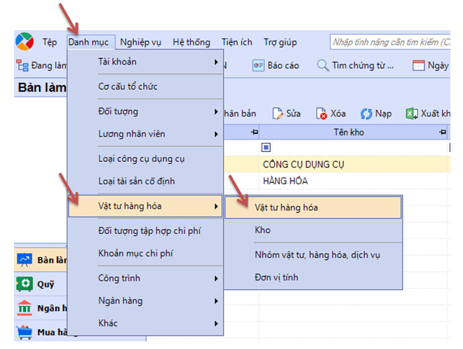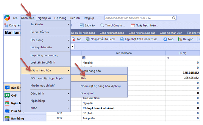 + Đầu tiên tại giao diện chính trên phần mềm Misa, bạn chọn :