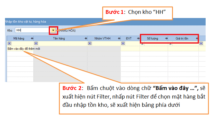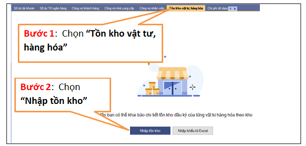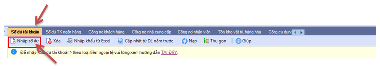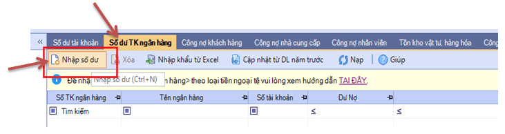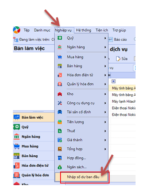 “Nghiệp vụ” / “Nhập số dư ban đầu”, sẽ xuất hiện giao diện sau, và thực hiện tiếp theo hình minh họa :