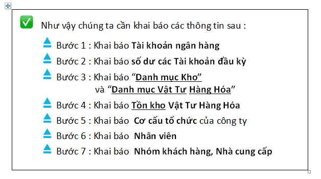 ► PHẦN 2 . Khai báo Danh mục và Số dư đầu kỳ