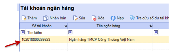 Các bạn khai báo TK ngân hàng này vào Misa như sau :