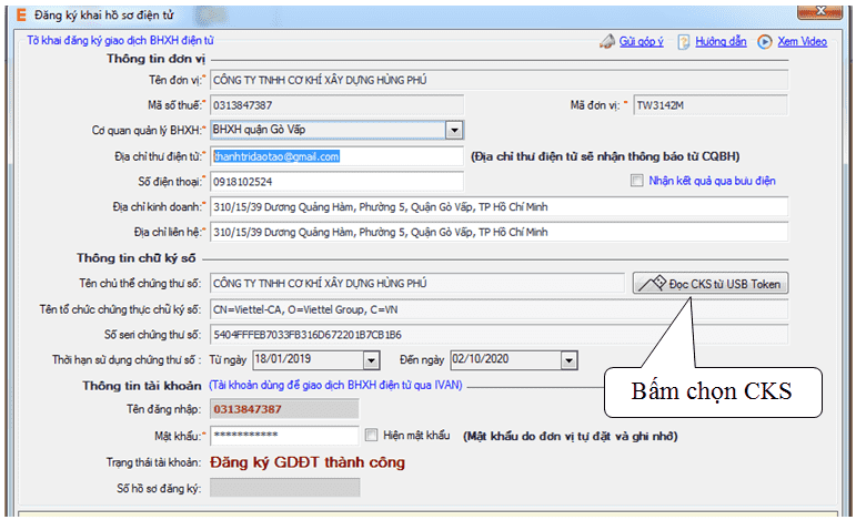 ► Lưu ý: bạn nên khai báo thông tin email đơn vị chính xác để nhận được thông báo từ cơ quan BHXH