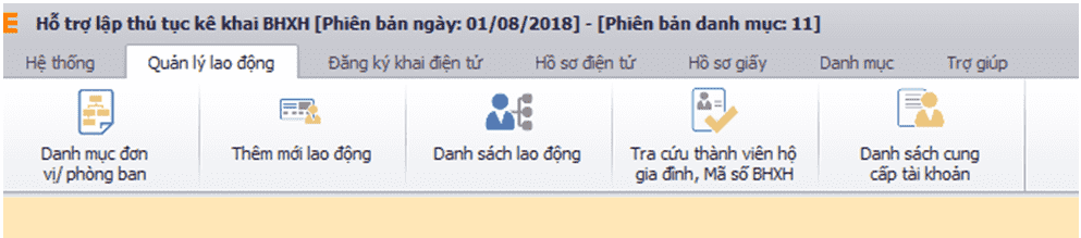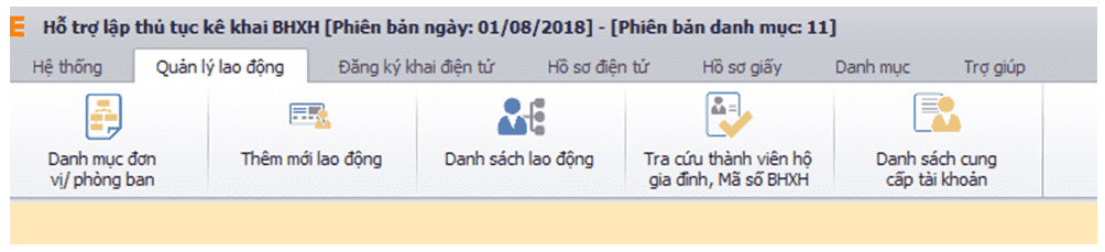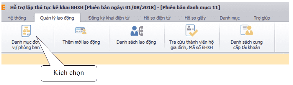 ► Trên màn hình eBH có chức năng Quản lý lao động. Bạn kích vào mục Danh mục đơn vị phòng ban.