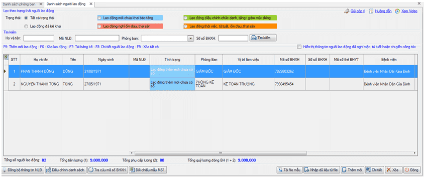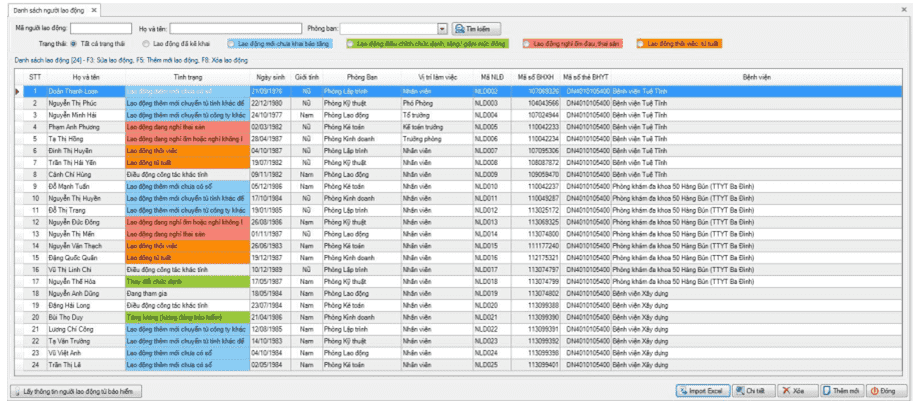 ► Màn hình danh sách người lao động hiện ra: