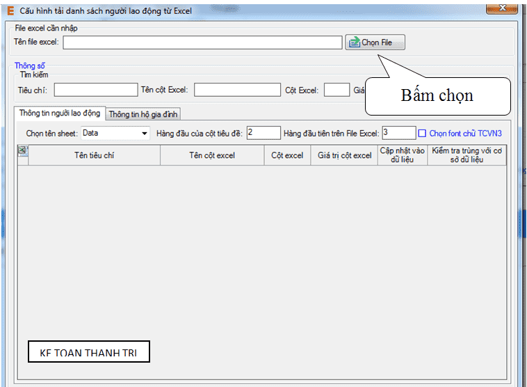 ► Bạn kích chọn nút “Nhập dữ liệu từ file”. Màn hình hiển thị như sau: