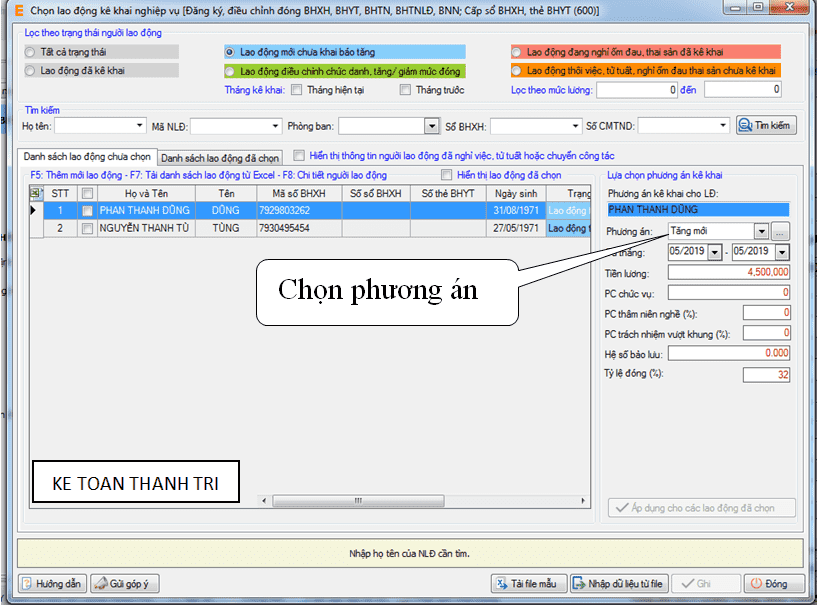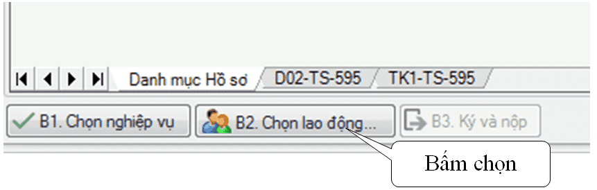 ► Sau khi thực hiện bước 1 Chọn nghiệp vụ, bạn tiến hành bước 2 Chọn lao động
