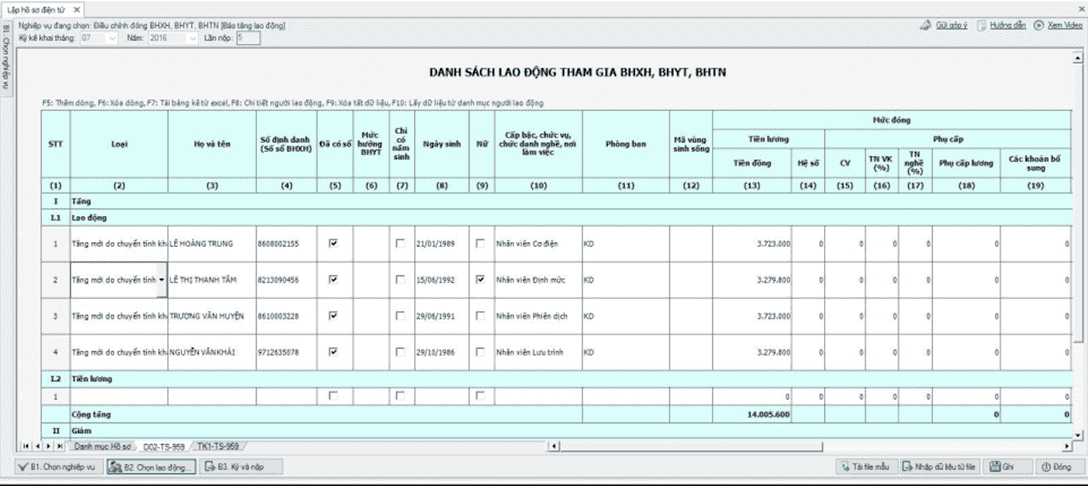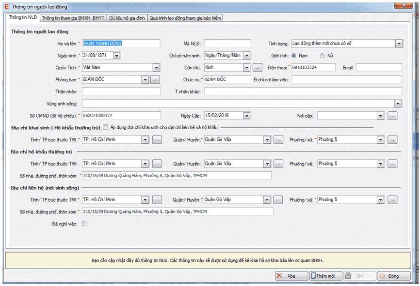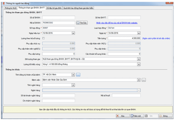 ► Nhập đầy đủ thông tin người lao động màn hình sẽ hiển thị: