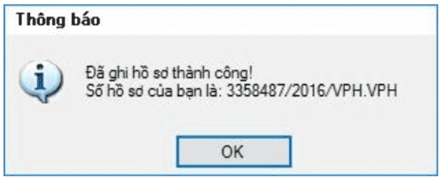 ► Hồ sơ đã được ghi thành công, bạn tiến hành thực hiện bước 3