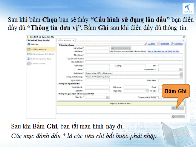 Lưu ý : trong Bước 2 : Nhập Mã đơn vị nếu DN bạn chưa có Mã đơn vị (nghĩa là mới tham gia BHXH lần đầu tiên) thì làm hồ sơ xin cấp Mã đơn vị. Hồ sơ gồm: