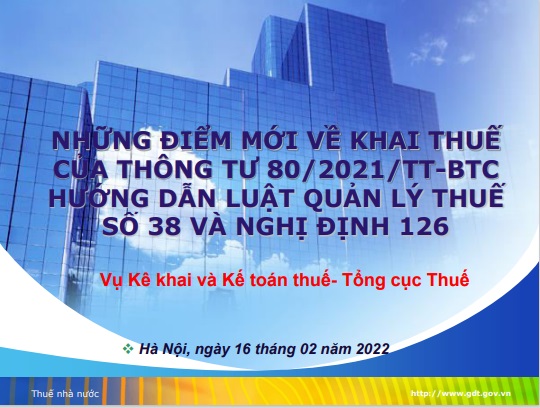 ♦ Kể từ 01/01/2022 Người nộp thuế sẽ thực hiện việc khai báo thuế theo Thông tư 80/2021/TT-BTC đáp ứng các qui định trong Luật Quản lý thuế số 38 và Nghị định 126/2020/NĐ-CP